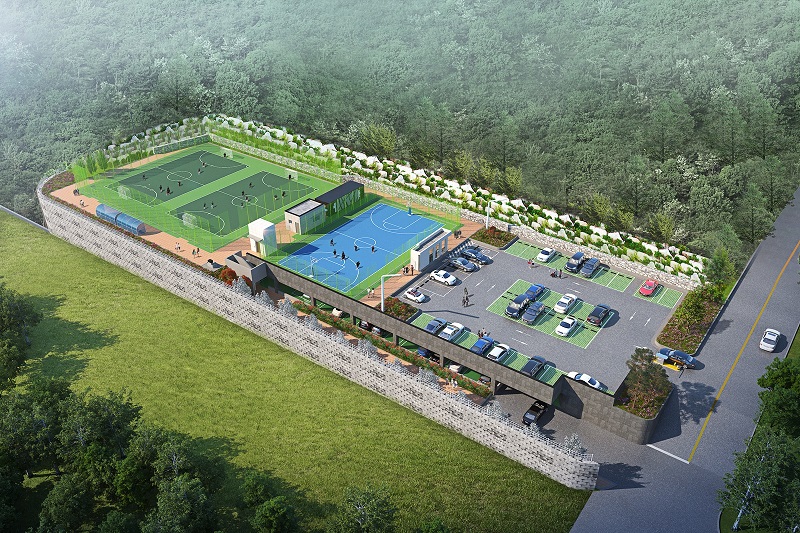 부지면적은 6,675㎡의 규모이고, 농구장 1면, 풋살장 2면, 주차장 97면을 조성하며, 내년 10월 준공 예정이다.