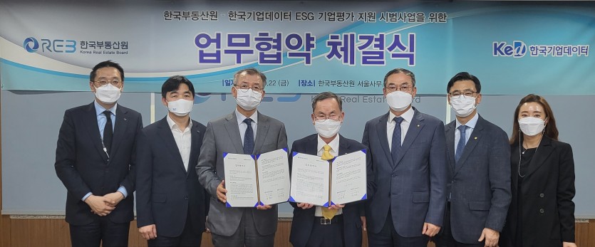 한국부동산원은 지난 22일 ESG 기업평가 전문기관 한국기업데이터및 서스틴베스트와 'ESG 기업평가 지원 시범사업을 위한 업무협약'을 각각 체결했다고 밝혔다.