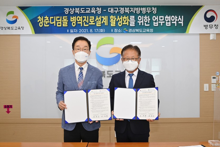 대구경북지방병무청은 17일 경북도교육청과 '청춘디딤돌 병역진로설계'사업 활성화를 위한 업무협약을 체결했다.