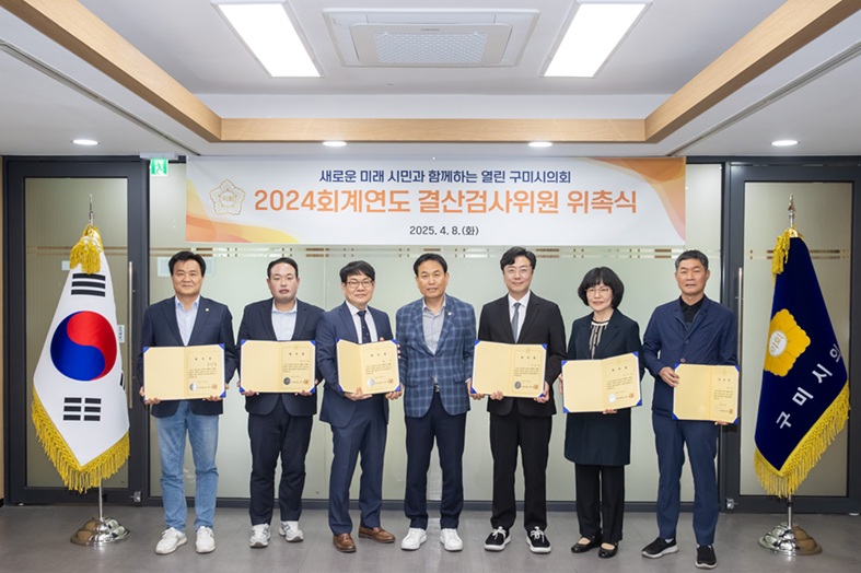 구미시의회는 8일, 의장실에서 2024 회계연도 결산검사위원 위촉식을 개최하고 총 6명의 위원을 위촉했다고 밝혔다.
