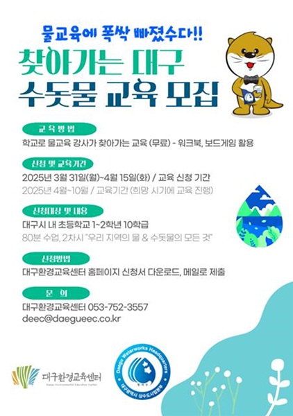 이번 교육은 수돗물의 소중함과 환경적 가치를 알리기 위해, 대구시 상수도사업본부와 대구환경교육센터가 협력해 진행된다.