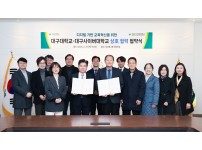 디지털 기반 교육혁신 위한 공동 협력 추진글로컬대학30 사업 유치 위한 공동 연구 수행 대구대학교(총장 박순진)와 대구사이버대학교(총장 이근용)가 디지털 기반 교육혁신을 위해 힘을 합치기로 했다.양 대학은 지난 2월 27일 경산캠퍼스 성산홀(본관) 2층 대회의실에서 박순진 대구대 총장, 이근용 대구사이버대 총장을 비롯한 주요 인사들이 참석한 가운데 협약식을 진행했다.이번 협약을 통해 대학은 디지털 교육 공동체와 생태계를 조성하기 위해 대학-지역사회-글로벌 차원에서 협력하고, 디지털 교육 대혁신을 위해 디지털 교육과정 운영기…