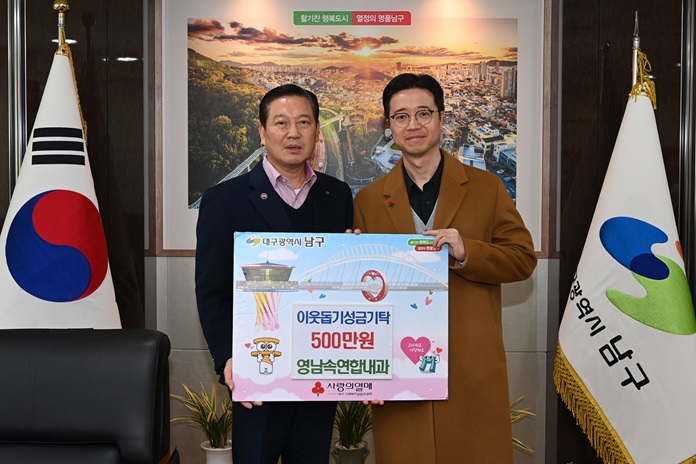 영남속연합내과(원장: 이호찬)는 지난 8일, 대구 남구에 이웃돕기 성금 500만 원을 기탁했다.