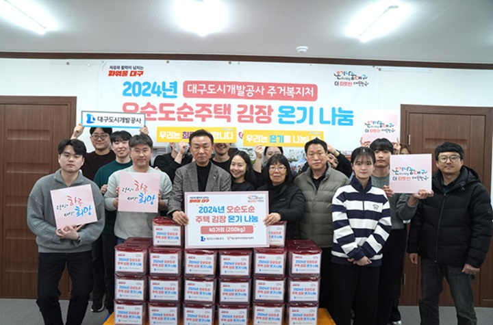 한편 대구도시개발공사는 이번 캠페인을 통해 공동체의 따뜻한 정을 나누며, 주거취약계층의 안정된 삶을 지원하는 역할을 이어갈 계획이다.