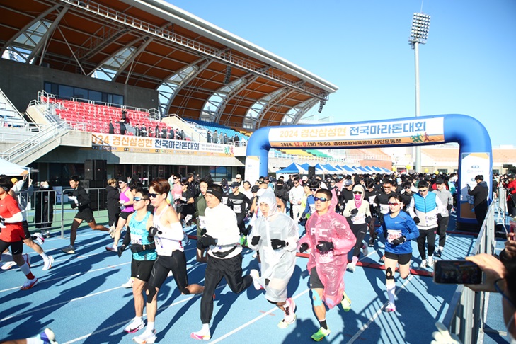 경산시는 지난 8일 경산시민운동장에서 전국 마라톤 동호인 950여 명이 참가한 **‘2024 경산 삼성현 전국 마라톤대회’**를 성공적으로 개최했다.