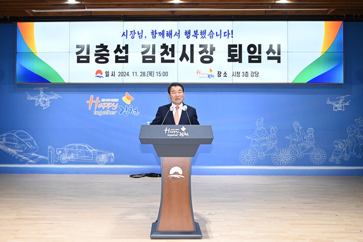 김충섭 김천시장이 28일 퇴임 인사를 통해 시민들에게 고마움과 아쉬움을 전했다.