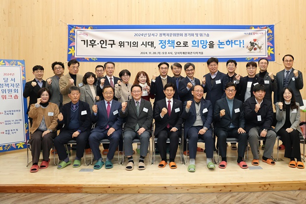 대구 달서구(구청장 이태훈)는 지난 28일 달서목재문화관에서 ‘기후위기’와 ‘인구위기’ 시대의 정책 방향을 논의하기 위해 정책자문위원회 정기회 및 워크숍을 개최했다.