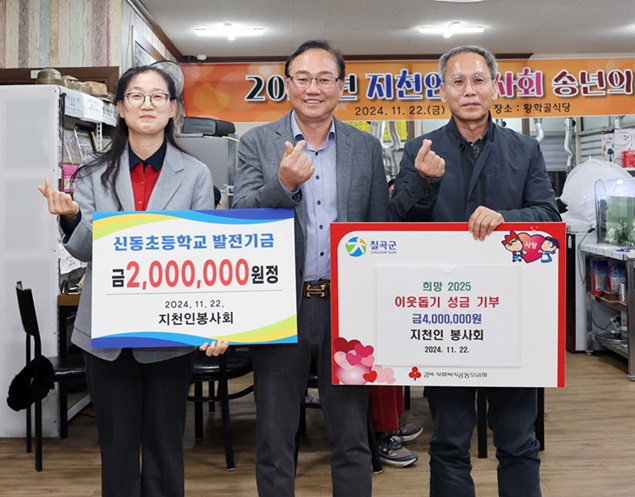 지난 22일 열린 봉사회 회장단 이·취임식 및 송년의 밤 행사에서는 신동초등학교 발전기금 200만 원과 이웃 돕기 성금 400만 원이 전달됐으며 행사에는 권순철 지천면이장협의회장을 비롯해 지역 주민들이 참석해 봉사회의 활동을 격려했다.