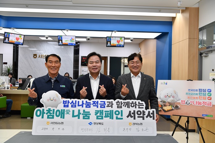 경북도와 경북농협은 18일 서안동농협(조합장 박영동) 신도청지점에서 건강한 쌀 소비문화 확산을 위한 사회공헌형 상품인 '밥심(心)나눔적금' 가입행사를 가졌다고 밝혔다.