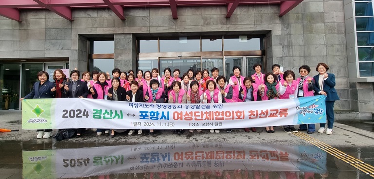 경산시여성단체협의회(회장 이정희) 회원 30명이 1일 포항시여성단체협의회 초청으로 포항시를 방문해 양성평등 실현과 여성 지도자 상생 발전을 위한 친선 교류 행사를 가졌다.