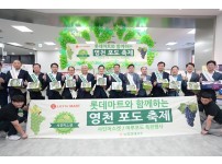 영천시는 2일부터 8일까지 전국 롯데마트 107개점과 롯데슈퍼 208개점에서 ‘전국 롯데마트와 함께하는 영천포도축제’ 특판행사를 진행한다고 밝혔다. 이번 행사는 영천포도의 우수성을 홍보하고, 판매량을 증대시키며, 올해 저온피해와 폭염으로 어려움을 겪은 과수농가를 지원하기 위해 마련됐다.출하 시기를 맞은 샤인머스켓과 MBA 품종 1.5kg, 총 7만 상자(105톤)의 포도가 대도시에 공급돼 농가 소득안정을 도모한다.행사 첫날에는 최기문 영천시장과 김선태 시의회 의장 등 관계자들이 롯데마트 제타플렉스 서울역점에서 영천포도 판촉…