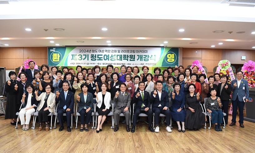 청도군은 27일 여성회관 종합교육장에서 수강생 및 내빈 60여 명이 참석한 가운데 제3기 청도여성대학원 개강식을 성황리에 개최했다.