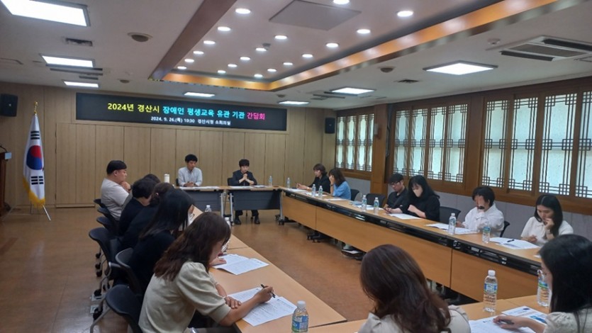 경산시는 26일 시청 소회의실에서 장애인 평생학습도시 지정을 목표로 경산시장애인종합복지관 등 유관 기관과 함께 ‘2024년 경산시 장애인 평생교육 유관 기관 간담회’를 개최했다.