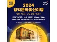 영덕군이 국가유산청 공모에서 4년 연속으로 '국가유산 야행 사업’에 선정됐다고 밝혔다. 이번 2024영덕문화유산야행은 '영해1924, 그날 밤을 거닐다’라는 부제로 10월 3일부터 5일까지 영덕군 영해면 옛 영해장터거리 근대역사문화공간 일원에서 개최될 예정이다.행사는 100년 전 번성했던 영해 거리를 복원해 근대민속촌으로 조성하고, 지역민에게 문화 향유의 기회를 제공하는 것을 목표로 한다.올해는 여덟 가지 색다른 밤 풍경을 테마로 22가지 프로그램이 준비돼 있으며, 군민 배우와 퍼레이드 참가자 등 지역 주민들이 함께 참여하…