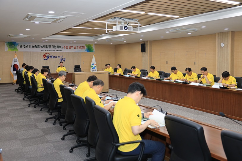 이번 중간보고회는 칠곡군의 탄소중립 목표 달성을 위한 구체적인 전략과 실행 방안을 마련하기 위해 진행되었으며 간부공무원 30여명이 참석해 다양한 의견을 나누는 시간을 가졌다.