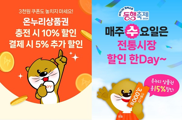 오는 30일까지는 충전식 카드형 온누리상품권 결제 시 5% 추가 할인과 15% 특별 충전 할인을 적용해 총 20% 할인 혜택을 누릴 수 있다.