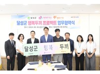 대구 달성군은 30일 사회공헌 네트워크 ‘행복얼라이언스’와 함께 지역 내 아동 결식 문제 해결을 위한 ‘행복두끼 프로젝트’ 업무협약을 체결했다고 밝혔다.이번 협약식에는 최재훈 달성군수, 행복나래㈜ 조민영 본부장, 행복도시락 사회적협동조합 최준 사무국장이 참석해 결식우려 아동 지원을 위한 협력 의지를 다졌다.‘행복두끼 프로젝트’는 결식우려 아동들이 하루 최소 두 끼를 보장받을 수 있도록 지원하는 민관협력 사회안전망 사업이며 협약을 통해 달성군은 결식 우려가 있는 아동 40명에게 12개월 동안 1만 400식의 도시락을 지원할 계획이다.…