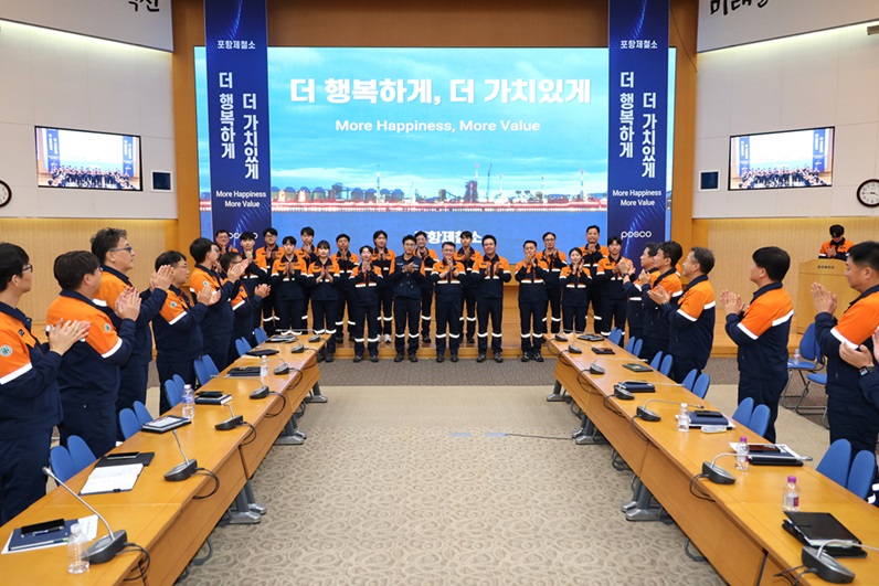 한편, 포항제철소는 지난달 31일 천시열 제철소장이 현장 직원들과 함께 하는 타운홀미팅을 통해 직원들의 고충사항을 직접 청취하고 현장에서 개선 방안을 제시하는 등 '직원들이 더 행복한 제철소'를 만들기 위해 노력하고 있다.