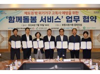 제도권 밖 위기가구의 고독사 예방을 위한 돌봄서비스 제공 안부 확인, 생필품 지원, 주거편의 서비스, 각종 상담서비스 지원포항시는 지난 19일 시청 중회의실에서 제도권 밖 위기가구의 고독사 예방을 위한 "함께돌봄 서비스" 업무협약을 체결했다고 밝혔다.이날 협약식에는 포항시와 포항시지역사회보장협의체, 포항고용복지플러스센터, 대한법률구조공단 포항출장소, 신용회복위원회 포항지부, 포항나눔지역자활센터, 늘품상담심리교육센터가 참여해 위기가구 고독사 예방에 힘을 모으기로 했다.‘함께돌봄 서비스’ 사업은 고독사 예방프로그램을 도입해 고…