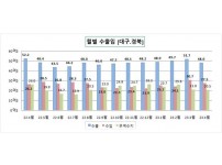 전년 동월 대비 수출 7.8%↓, 수입 5%↑, 무역수지 흑자규모 20.8%↓,이차전지원료 수출 증가 지속(93.3%), 무선통신기기 수출은 하락(△42.7%),관세청이 15일 2023년 4월 우리나라 무역수지 적자폭은 전월대비 42.7% 감소해 26.5억 달러를 기록했다고 밝혔다.대구․경북 수출은 48억 달러, 수입은 27.5억 달러로, 무역수지 흑자 규모는 전년 동월 대비 20.8% 감소한 20.5억 달러를 기록했다.대구지역의 4월 수출은 10.1억 달러(17.1%), 수입은 9.4억 달러(57.7%)이며, 무역수지는…
