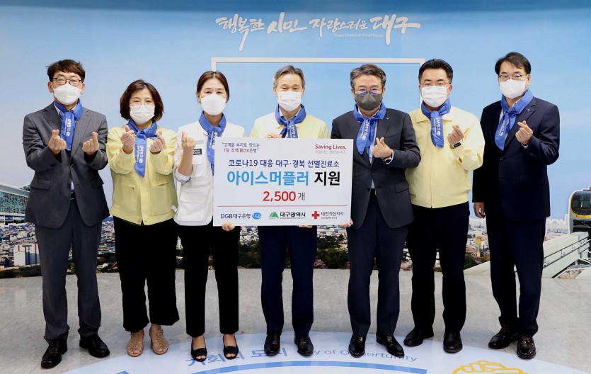 DGB대구은행은 대구시청에서 폭염 속에서 코로나19 방역을 위해 격무에 시달리는 지역 선별진료소 근무 의료진들을 위해 아이스 머플러 전달식을 실시했다고 28일 밝혔다.
