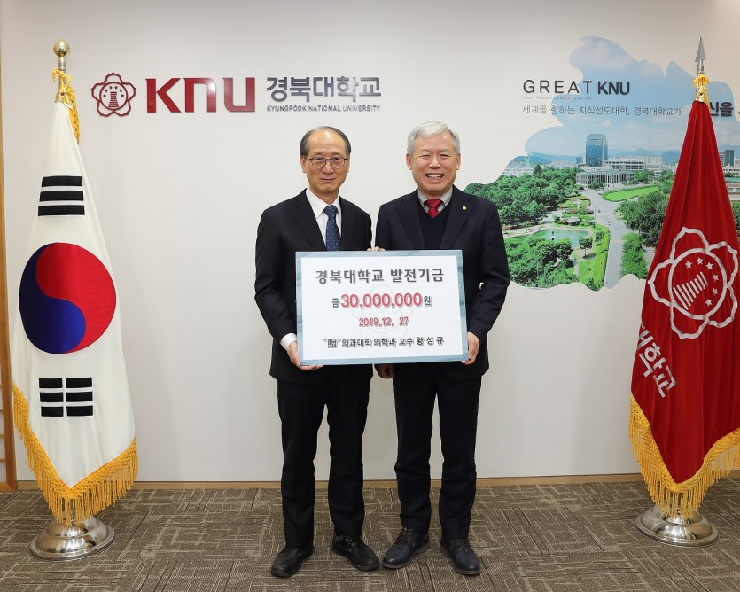 경북대 의학과 황성규 교수가 지난 27일 발전기금 3천만원을 경북대에 전달했다.