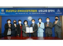 여성전문인력 양성 및 양성평등 문화 확산 위해 두 기관 역량 모아여성정책, 지역 맞춤형 여성전문인력 양성 연구, 여대생 일자리 창출 등 머리 맞대영남대학교와 경북여성정책개발원이 여성전문인력 양성 및 양성평등 문화 확산을 위한 협약을 체결했다고 8일 밝혔다. 7일 오전 영남대 본관 3층 대회의실에서 진행된 이번 협약 체결식에는 영남대 김재춘 교육혁신부총장, 문용선 인권성평등센터장과 경북여성정책개발원 하금숙 원장 등 양 기관의 주요 관계자들이 참석했다.이번 협약 체결에 따라 양 기관은 지역여성정책 발굴을 위한 협력 및 노하우 …