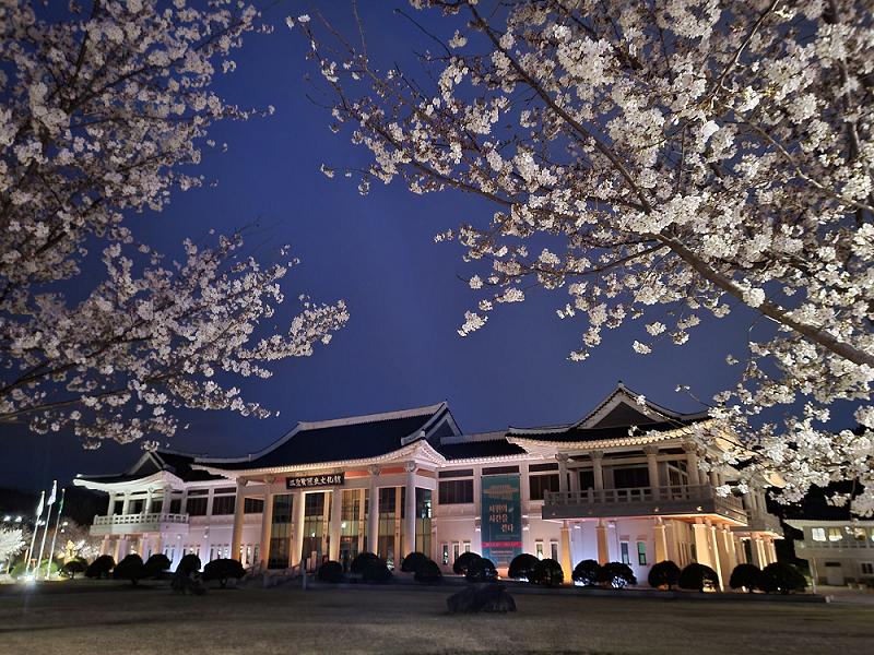 경산시 삼성현역사문화공원이 봄꽃과 아름다운 야경으로 방문객들의 눈길을 끌고 있다.