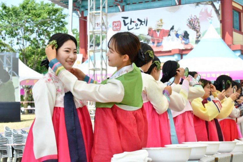 음력 5월 5일 단옷날인 3일은 호장장군 행렬을 시작으로 한장군대제, 자인단오굿, 여원무, 팔광대의 ‘경산자인단오제’(국가무형문화재 제44호) 다섯 마당과 창포 머리 감기 시연 등이 진행됐다.