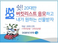DGB대구은행은 20대 고객을 대상으로 ‘IM-Twenty : 내 꿈 응모하고 내가 원하는 선물 받기’ 이벤트를 실시한다고 밝혔다.