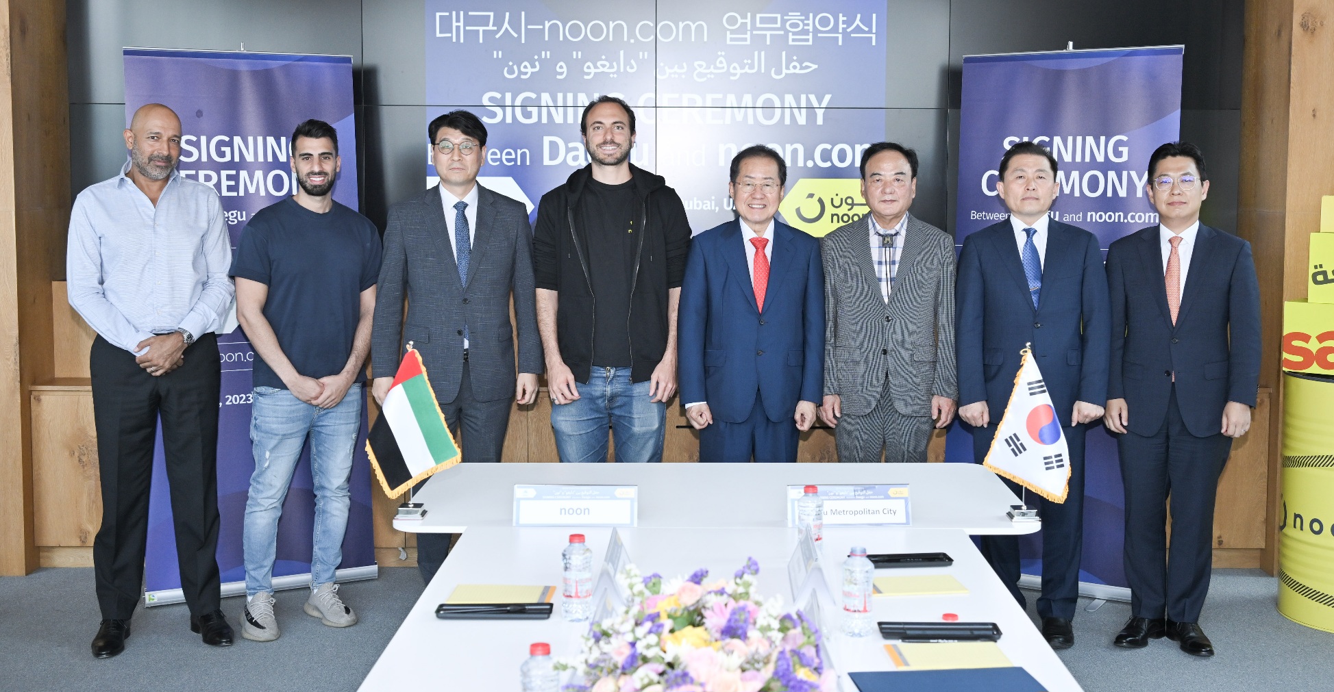 홍준표 대구시장은 18일 ‘중동의 AMAZON’이라 불리는 현지 최대 온라인 플랫폼기업인 noon.com(이하 눈닷컴사)의 두바이 본사에서 업무협약을 체결하고 전략적 협력을 맺었다고 밝혔다.