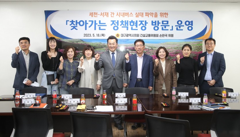 대구시의회 손한국 의원(건설교통위원회, 달성군3)은 18일 세천리, 서재리 학생들의 통학 실태를 살펴보고, 서재중학교 교사 및 지역 주민들과 만나 시내버스 노선의 문제점 등 불합리한 시내버스 노선에 대한 대구시의 적극적인 대응을 주문했다고 밝혔다.