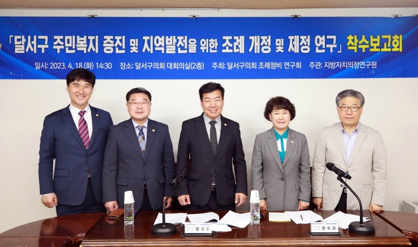 대구 달서구의회 의원 연구단체 "달서구의회 조례정비 연구회(대표 황국주 의원)와 협동조합 지방자치의정연구원(대표 최민수)은 18일 달서구의회 대회의실에서 “달서구 주민복지 증진 및 지역발전을 위한 조례 개정 및 제정 연구”에 대한 연구용역 착수보고회를 개최했다고 밝혔다.