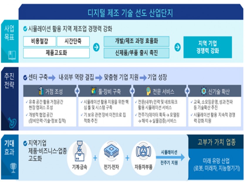 사업을 통해 대구성서산단 내에 사업수행 거점센터를 설립하고 시뮬레이션 소프트웨어와 고성능컴퓨터 등 장비를 구축해, 미래차, 로봇, 지능형기계 등 지역 특화산업 분야에 정보통신기술(ICT)융합 제품 설계·해석, 가상검증, 시제품 제작 서비스를 지원하고 전문인력 양성을 통한 기술보급도 추진한다.