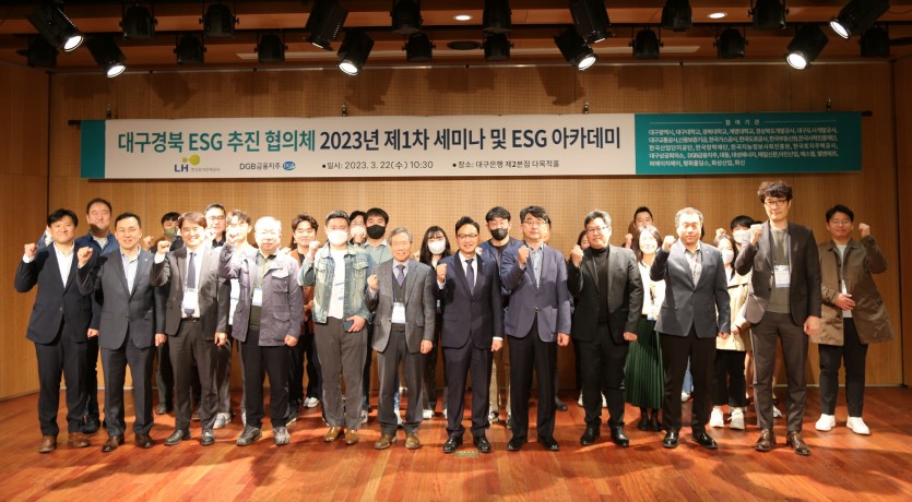 LH 대구경북지역본부는 DGB금융지주와 공동주관으로 22일 대구은행 제2본점에서 ESG 경영가치의 중요성과 조기정착의 선도적 역할을 위해 대구경북 ESG추진 협의체 제1차 세미나 를 개최했다고 밝혔다.