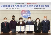 교육취약계층 학생 건강 증진을 위한 치과진료 및 안경지원 사업 업무 협약 체결, 대구시교육청은 지난 22일, 23일 양일간 대구시교육청 여민실에서 교육취약계층 학생 건강증진을 위한 치과진료 및 안경지원 사업 상호협력 강화를 위해 경북대학교치과병원 및 대구보건대학교와 업무 협약을 체결한다고 밝혔다. 교육취약계층 학생들은 부모님들의 관심 부족과 경제적 어려움으로 치아 및 시력관리에 상대적으로 어려움이 있어, 안정적인 건강관리가 무엇보다 필요함에 따라, 경북대학교치과병원 및 대구보건대학교와 업무 협약을 추진하게 됐다. 이…