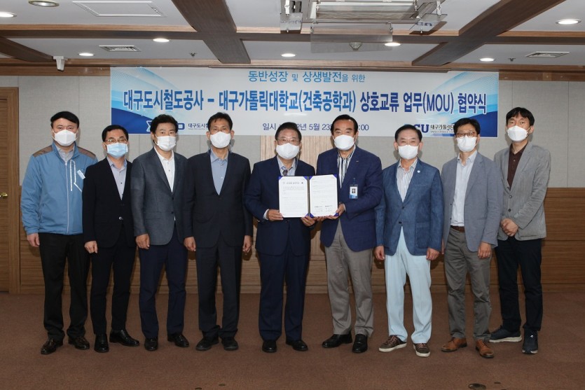 대구가톨릭대와 대구도시철도공사는 23일 대구도시철도공사 회의실에서 상호교류 증진과 협력체계 강화를 위한 업무협약을 체결했다고 밝혔다.