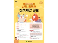 2022년 제1회 시민·공무원 정책제안 공개 모집(4.12.~5.12)대구 자치경찰 치안 시책, 안전문화 정착, 지역관광 활성화, 시민경제 살리기 등 4개 분야대구시는 시민과 공무원의 창의적인 아이디어를 발굴해 정책에 반영하고자 ‘2022년 제1회 시민·공무원 정책제안 공모’를 실시한다고 11일 밝혔다.이번 공모의 주제는 내가 만드는 대구 자치경찰 치안 시책 아이디어(생활안전, 교통안전, 사회적 약자보호), 안전문화 정착방안(시민이 안심할 수 있는 안전한 아파트 만들기), 지역관광 활성화 방안, 시민경제 살리기 방안 등 4건이며, …