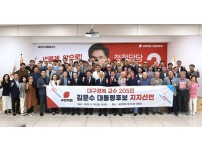 “김문수 후보는 말이 아니라, 평생 걸어온 길로 증명된 사람입니다.”대구,경북 교수 205인은 30일, 국민의힘 대구시당 강당에서 국민의힘 김문수 대통령 후보 지지를 선언했다.이날 행사에는 국민의힘 중앙선대위 미래혁신특별본부장인 강영욱 교수의 환영사와 허창덕 영남대학교 교수의 지지선언문 낭독으로 진행됐다.지지 성명문을 통해 “대한민국의 정치, 언론, 교육이 본래의 공공성과 신뢰를 잃어가는 현실에 깊은 우려를 표하며, 국민통합과 미래세대를 위한 새로운 지도자로 김문수 후보를 선택한다”고 밝혔다.이들 교수들은 “김문수 후보는 분열과 갈…