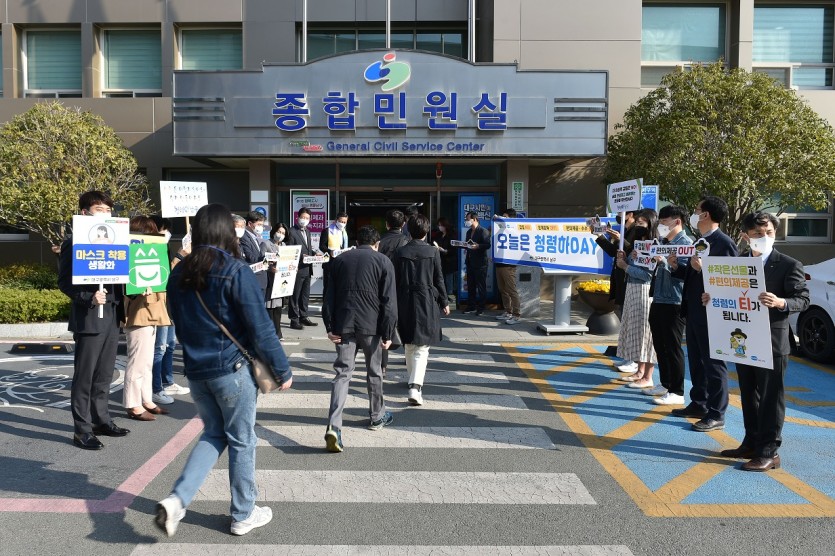 특히 3대 관행인 갑질, 꼰대문화, 편의제공 금지 등 공무원 행동강령을 준수하고 청렴을 다짐하는 청렴하Day 운동을 전개하였으며, 직원들에게 청렴을 상기할 수 있는 청렴 홍보물(마스크 스티커, 책자)을 배부했다.
