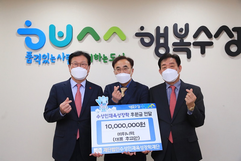 추교관 ㈜위니텍 대표는 10일 지역인재 육성을 위해 장학금 1천만 원을 수성인재육성장학재단에 기탁했다.