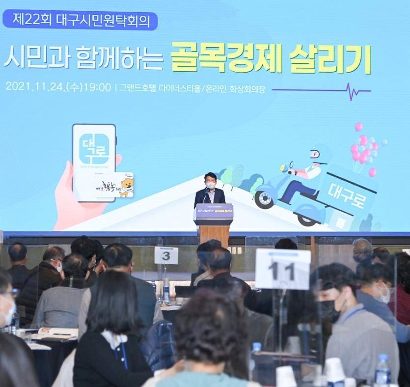 ‘일상회복 시대, 시민과 함께하는 골목경제 살리기’라는 주제로 개최된 제22회 대구시민원탁회의는 대면과 비대면을 병행한 하이브리드 방식으로 개최됐으며, 위축된 골목경제가 활성화될 수 있는 방안에 대해 참가 시민들이 생생한 현장의 목소리와 다양한 아이디어를 쏟아내며 열띤 토론으로 진행됐다.