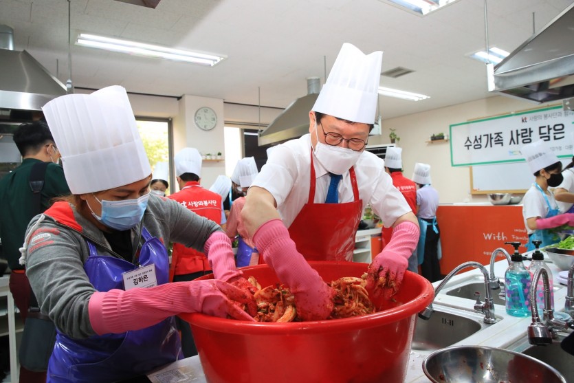 이날 행사는 KT대구·경북광역본부 ‘사랑의 봉사단’의 후원금 300만원을 기탁 받아 추진하게 됐으며 입국초기 다문화가정이 직접 겉절이와 물김치를 담아 취약계층 100가구에 전달했다.