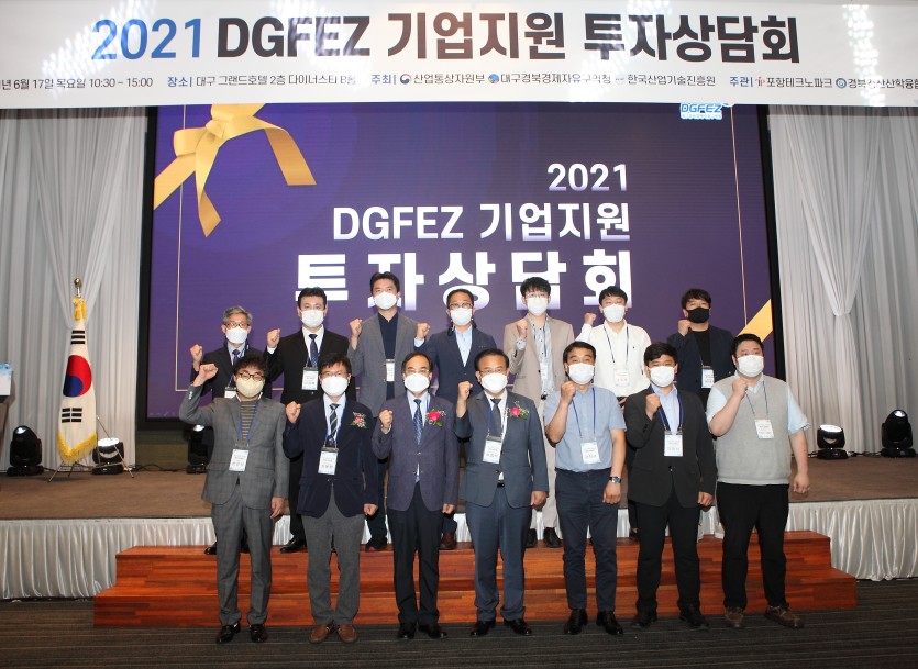 대구경북경제자유구역청(청장 최삼룡, 이하 ‘대경경자청’)은 17일 대구그랜드호텔에서 입주기업 투자 활성화 및 혁신성장 지원을 위해 입주(예정)기업, 벤처캐피탈(VC), 한국산업기술진흥원 담당자 등 30여 명이 참석한 가운데 '2021 DGFEZ 기업지원 투자상담회'를 성공적으로 개최했다.