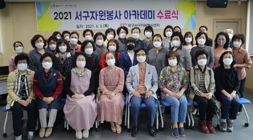 대구 서구자원봉사센터는 3일 자원봉사센터 교육장에서 ‘2021 서구자원봉사 아카데미 수료식’을 개최해 모든 교육과정의 75% 이상을 이수한 31명의 자원봉사자에 대해 수료증을 전달했다.