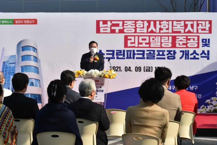 남구청은 복지시설 수요가 증가함에 따라 시설노후화에 따른 지역주민의 불편을 최소화하고자 리모델링을 추진해 준공하였으며, 새롭게 단장한 복지관에는 “기초자치단체 최초”로 커뮤니케이션 레저스포츠인 실내 스크린파크골프장을 마련했다.