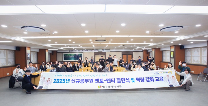 대구 서구청은 7일 구청 대회의실에서 신규 공무원의 안정적인 공직 생활 정착을 돕기 위한 '멘토-멘티 결연식 및 역량 강화 교육'을 실시했다.