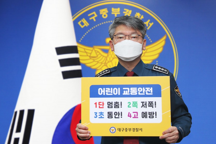 양시창 대구중부경찰서장은 10일 어린이보호 최우선 문화정착과 어린이 교통사고 예방에 대한 국민적 공감대 형성을 위해 ‘어린이 교통안전 릴레이 챌린지’ 행사에 참여했다.