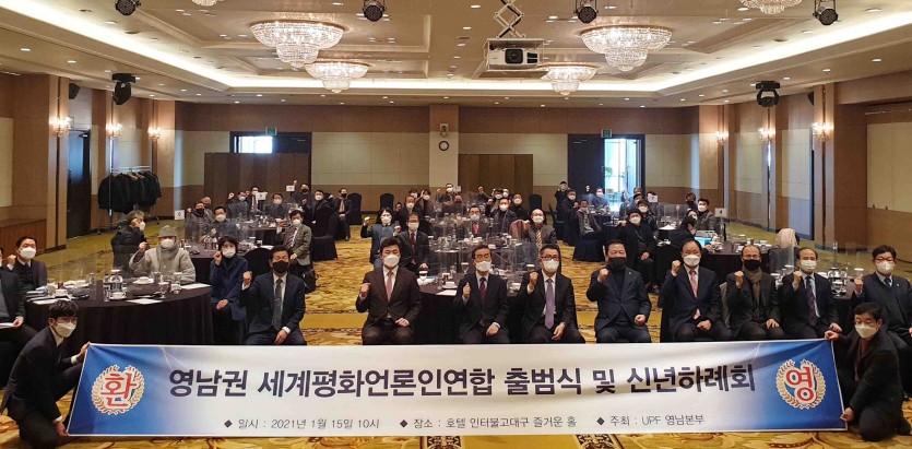 천주평화연합(UPF) 영남본부가 주최한 '2021 영남권 세계평화언론인연합회 출범식 및 신년하례회' 행사는 지난 15일 대구 호텔인터불고 에서 영남지역 언론인과 가정연합, UPF 관계자 등 90여명이 참석한 가운데 성황리에 개최됐다.