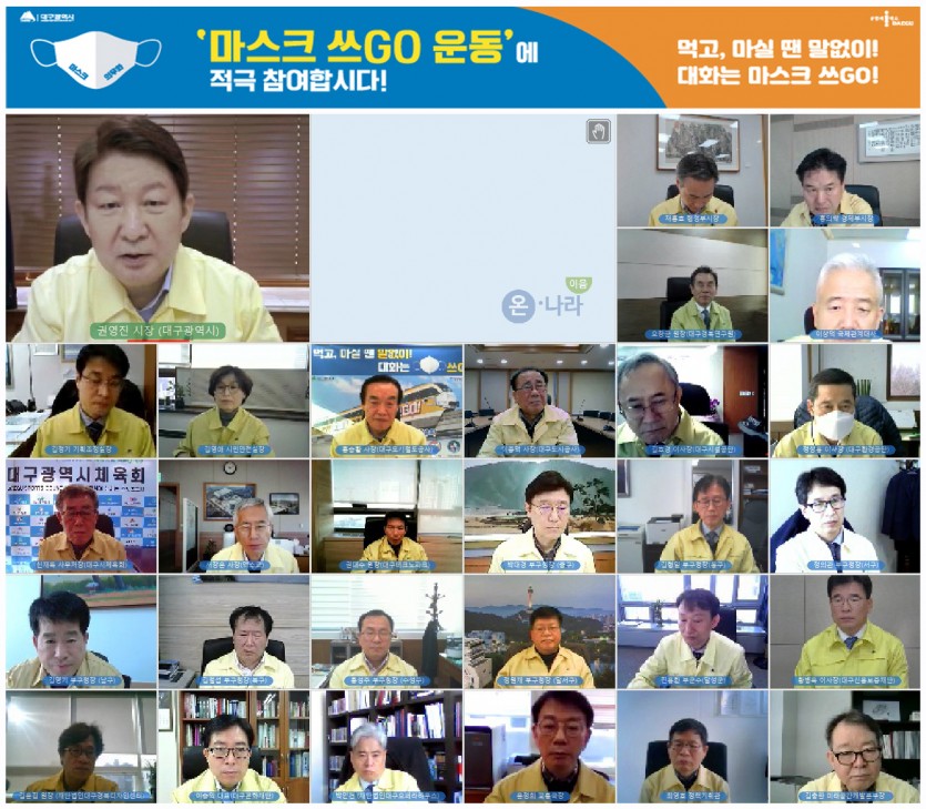 특히, 앞서 대구시가 발표한 특별 방역 대책 가운데 10인 이상의 음식물 섭취 모임・행사는 취소하고 집에서 머물 것을 강력히 권고한다는 내용을 강조하면서 “우리 모두가 방역관리자가 되어 이러한 지침을 시민들이 반드시 지킬 수 있도록 앞장설 것”을 거듭 주문했다.